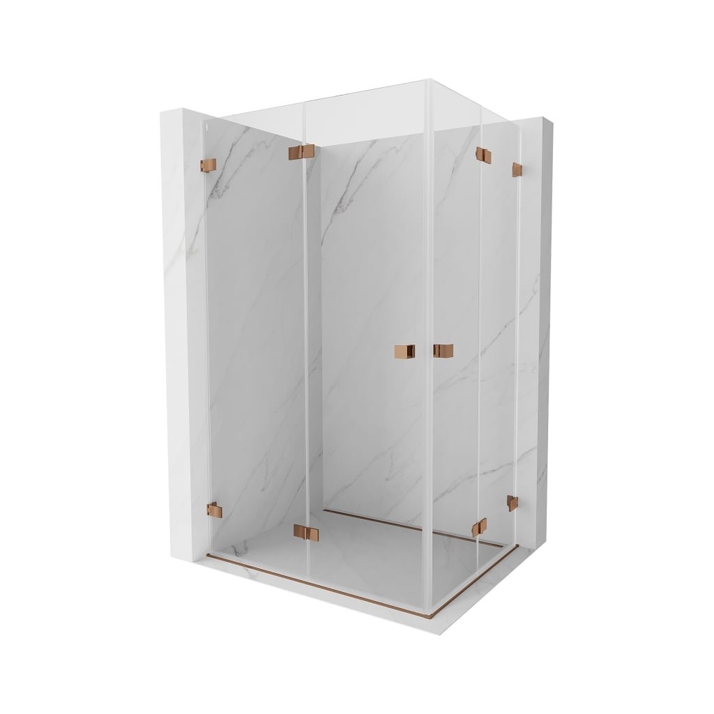 Mexen Lunar-F Duo, duș rabatabil 85 x 70 cm, sticlă transparentă de 8 mm, profil auriu roz, 836-085L-070P-60-00