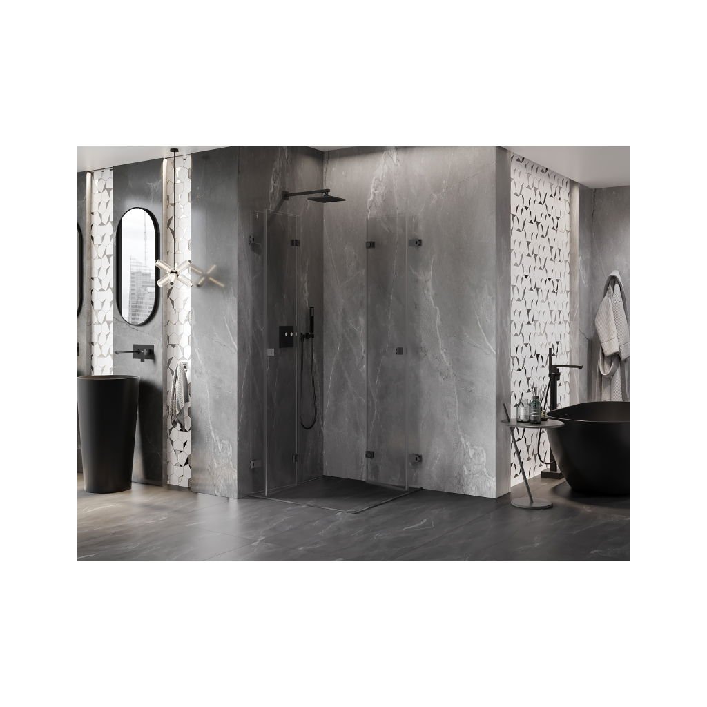 Mexen Lunar-F Duo, duș rabatabil 90 x 90 cm, sticlă transparentă de 8 mm, profil grafit, 836-090L-090P-95-00