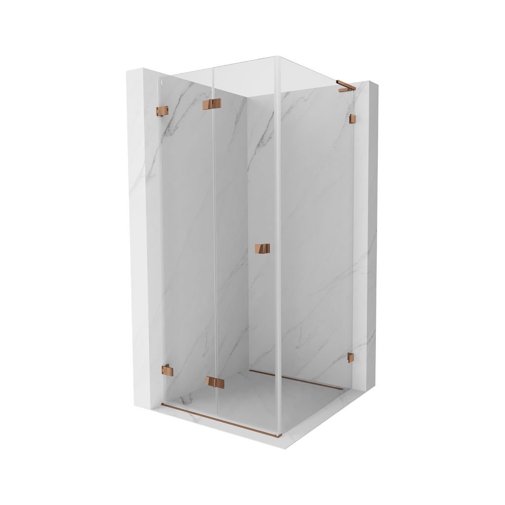 Mexen Lunar-F L, cabină de duș pliabilă stânga 100 x 100 cm, sticlă transparentă de 8 mm, profil auriu roz, 836L-100-100-60-00-L