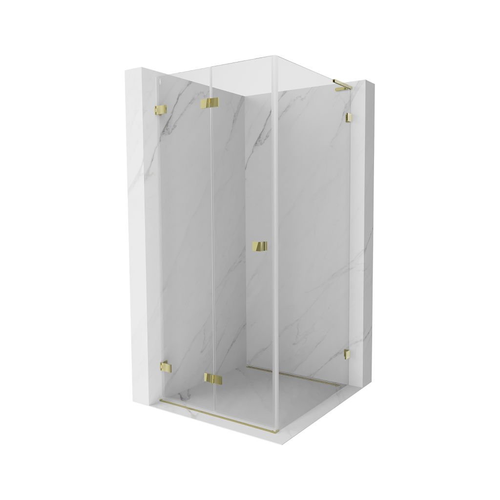 Mexen Lunar-F L, cabină de duș rabatabilă stânga 90 x 90 cm, sticlă transparentă de 8 mm, profil auriu, 836L-090-090-50-00-L