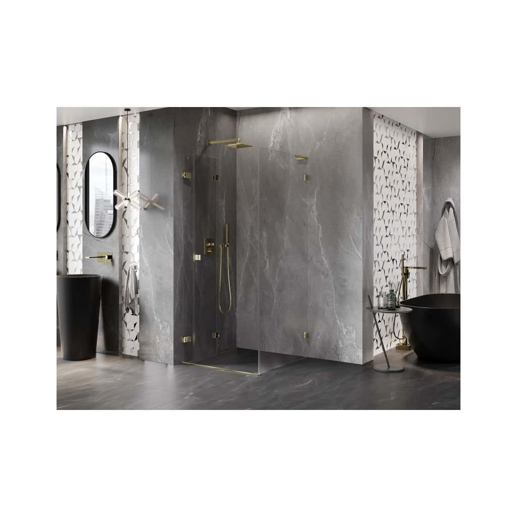 Mexen Lunar-F L, colț de duș rabatabil stânga 100 x 100 cm, sticlă transparentă de 8 mm, profil auriu, 836L-100-100-50-00-L