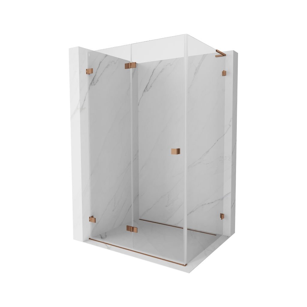 Mexen Lunar-F L, colț de duș rabatabil stânga 90 x 80 cm, sticlă transparentă de 8 mm, profil auriu roz, 836L-090-080-60-00-L