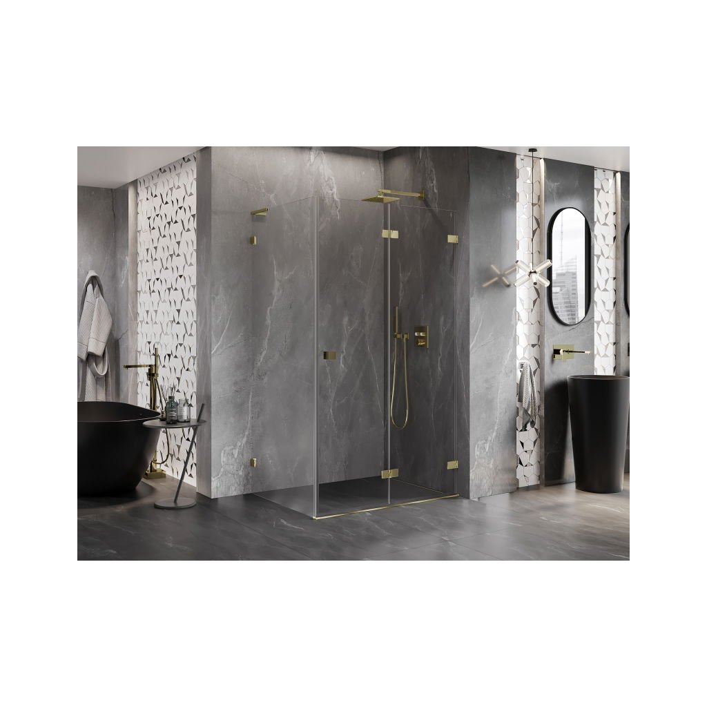 Mexen Lunar-F L, colt dus dreapta 90 x 70 cm, sticla transparenta 8 mm, profil auriu, 836L-090-070-50-00-P