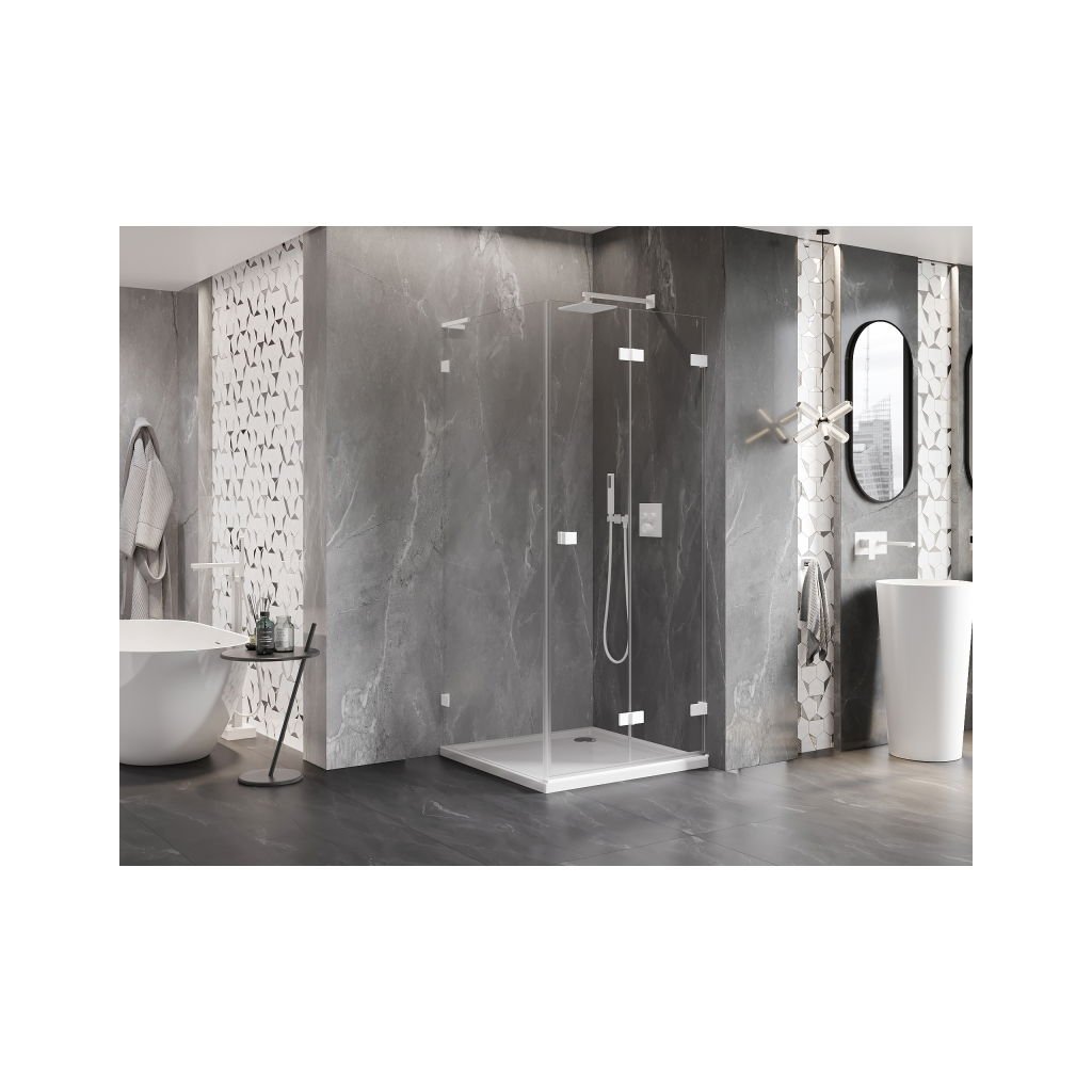 Mexen Lunar-F L, duș rabatabil dreapta 80 x 80 cm, sticlă transparentă 8 mm, profil alb, 836L-080-080-20-00-P