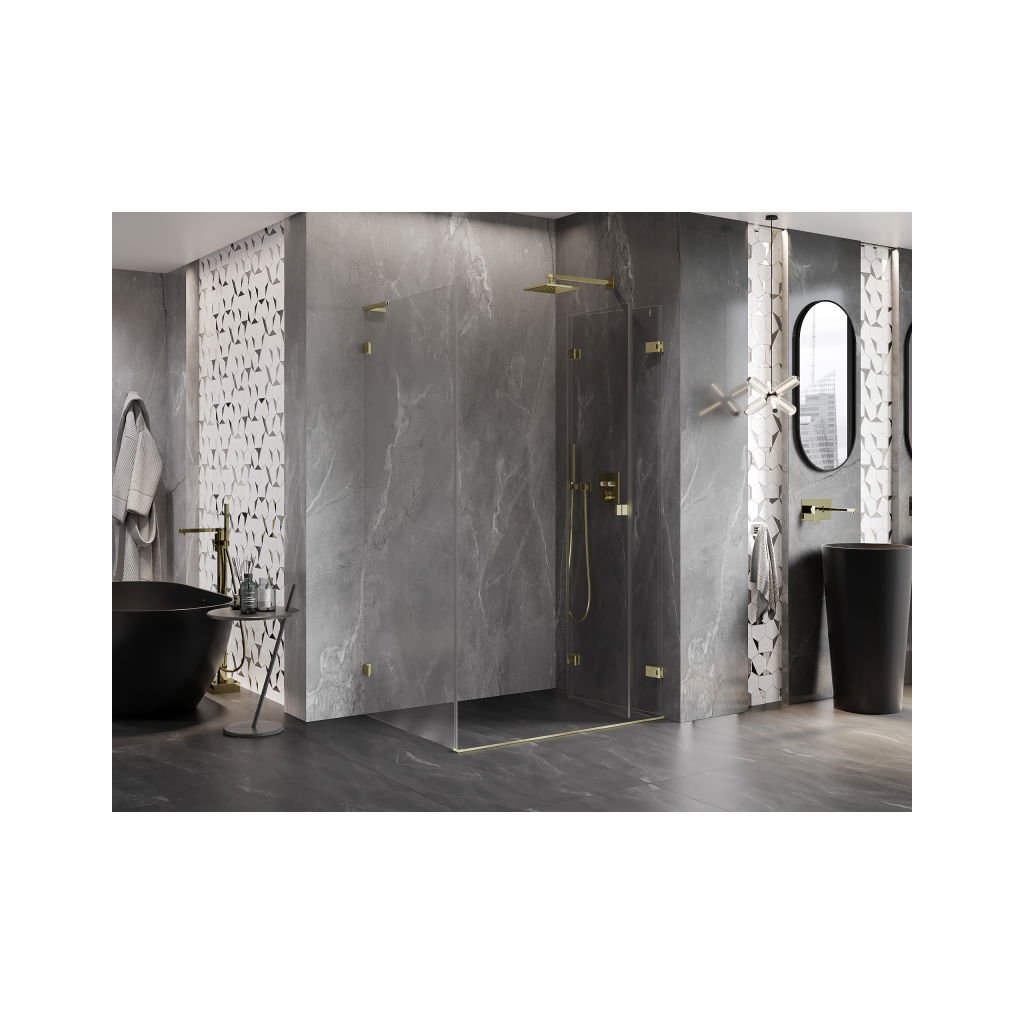 Mexen Lunar-F L, duș rabatabil dreapta 95 x 90 cm, sticlă transparentă de 8 mm, profil auriu mat, 836L-095-090-55-00-P