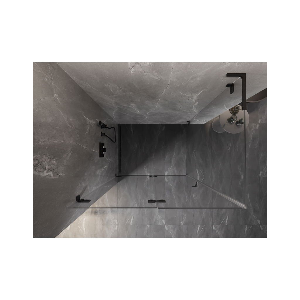 Mexen Lunar-F L, duș rabatabil stânga 85 x 80 cm, sticlă transparentă de 8 mm, profil negru, 836L-085-080-70-00-L