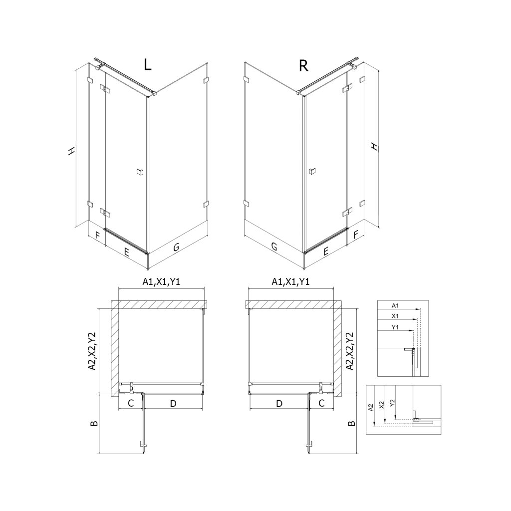 Dimensiuni: 120x80 cm (usa dreapta 120 cm, perete 80 cm)
