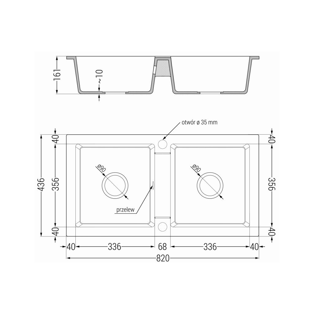 - Orificiu de scurgere: 3,5”; fi = 90 mm