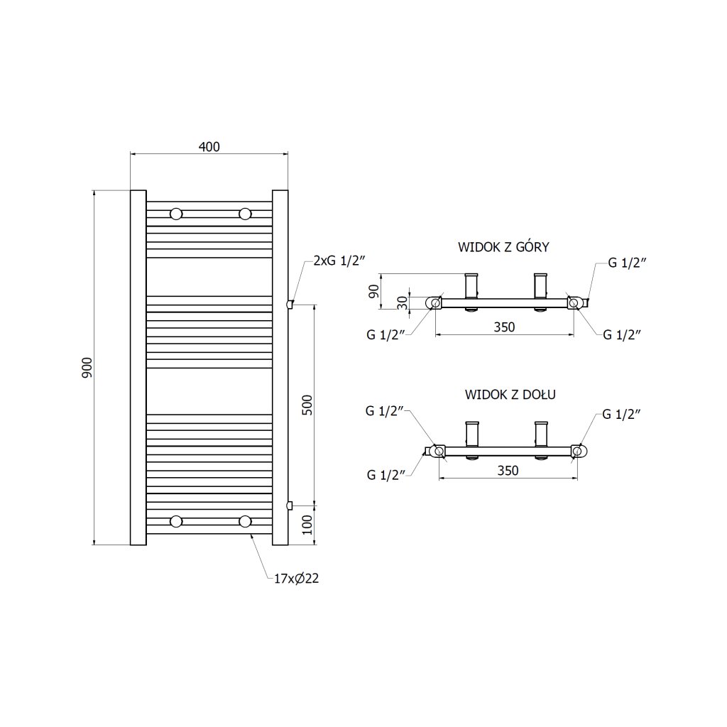 Mexen Mars, element de încălzire 900 x 400 mm, 309 W, racord lateral dreapta și jos, alb, W110-0900-400-00-20-S