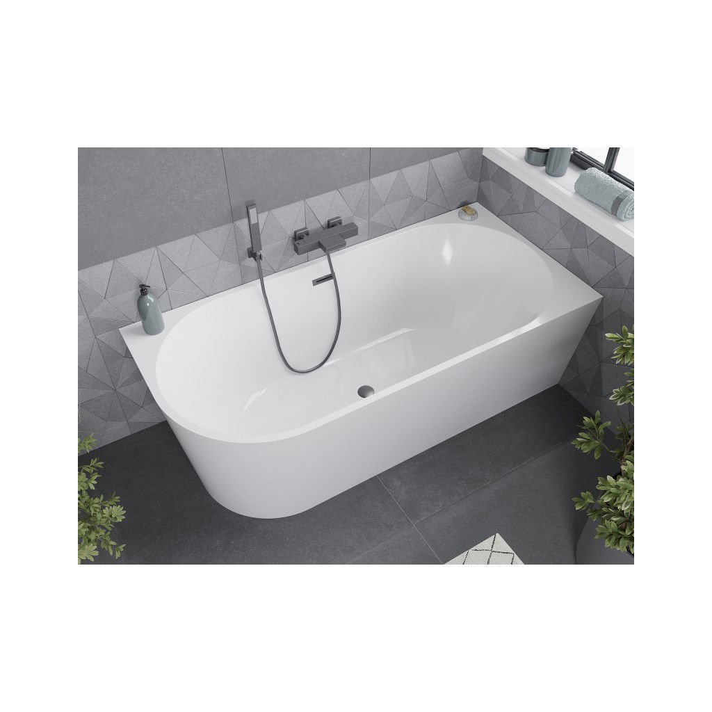 Mexen Mia, cadă de colț de sine stătătoare, dreapta, 150 x 75 cm, alb, preaplin grafit periat, 52691507500P-95