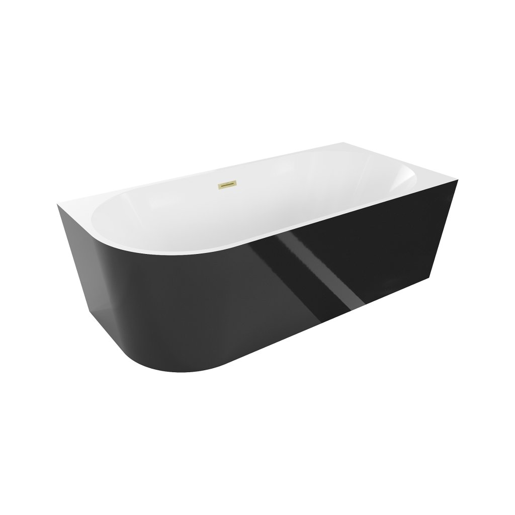 Mexen Mia, cadă de colț de sine stătătoare, dreapta, 180 x 80 cm, alb-negru, preaplin auriu mat, 52691808075P-55