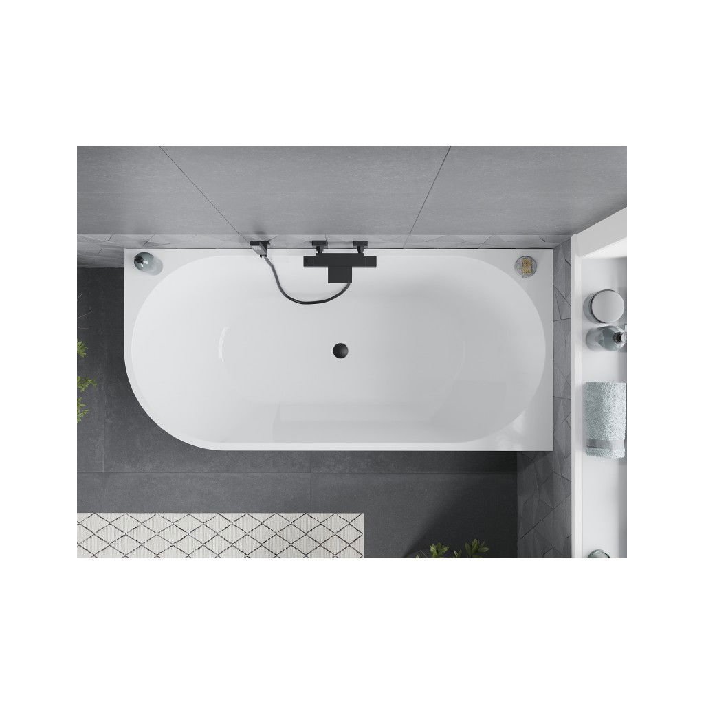 Mexen Mia, cadă de colț de sine stătătoare dreapta 140 x 75 cm, alb/negru, preaplin negru, 52691407575P-70