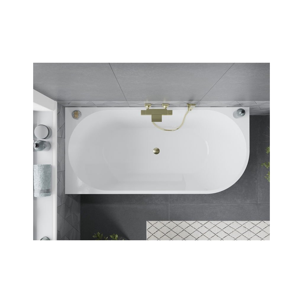 Mexen Mia, cadă de colț de sine stătătoare stânga 140 x 75 cm, alb, preaplin auriu lucios, 52691407500L-50
