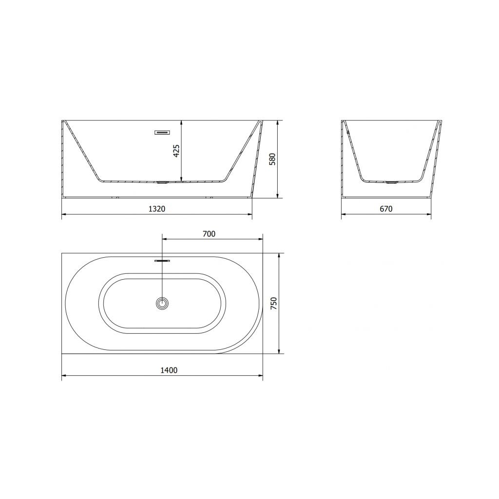 Mexen Mia, cadă de colț de sine stătătoare stânga 140 x 75 cm, alb/negru, preaplin negru, 52691407575L-70