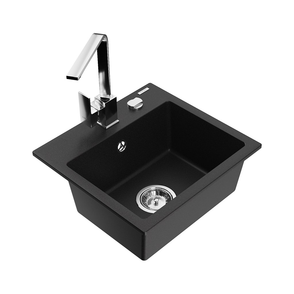 Mexen Milo, chiuveta granit cu 1 camera 435x410x171 mm si baterie cromata Rita, negru, 6505-77-670300-00