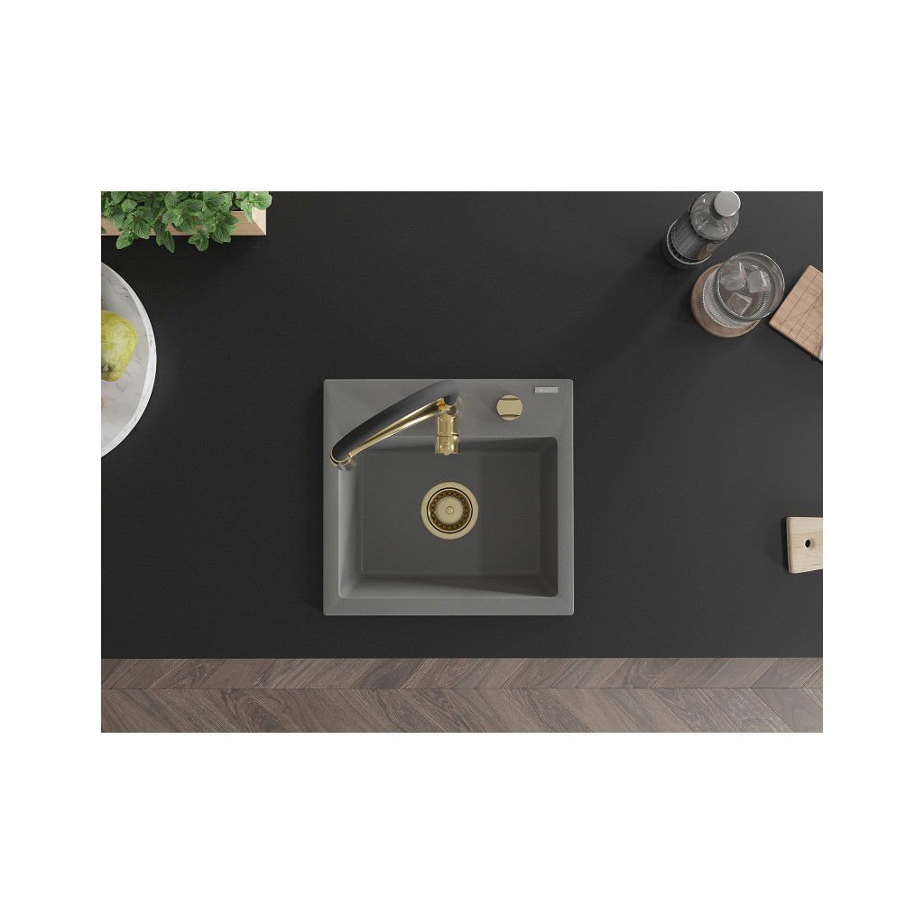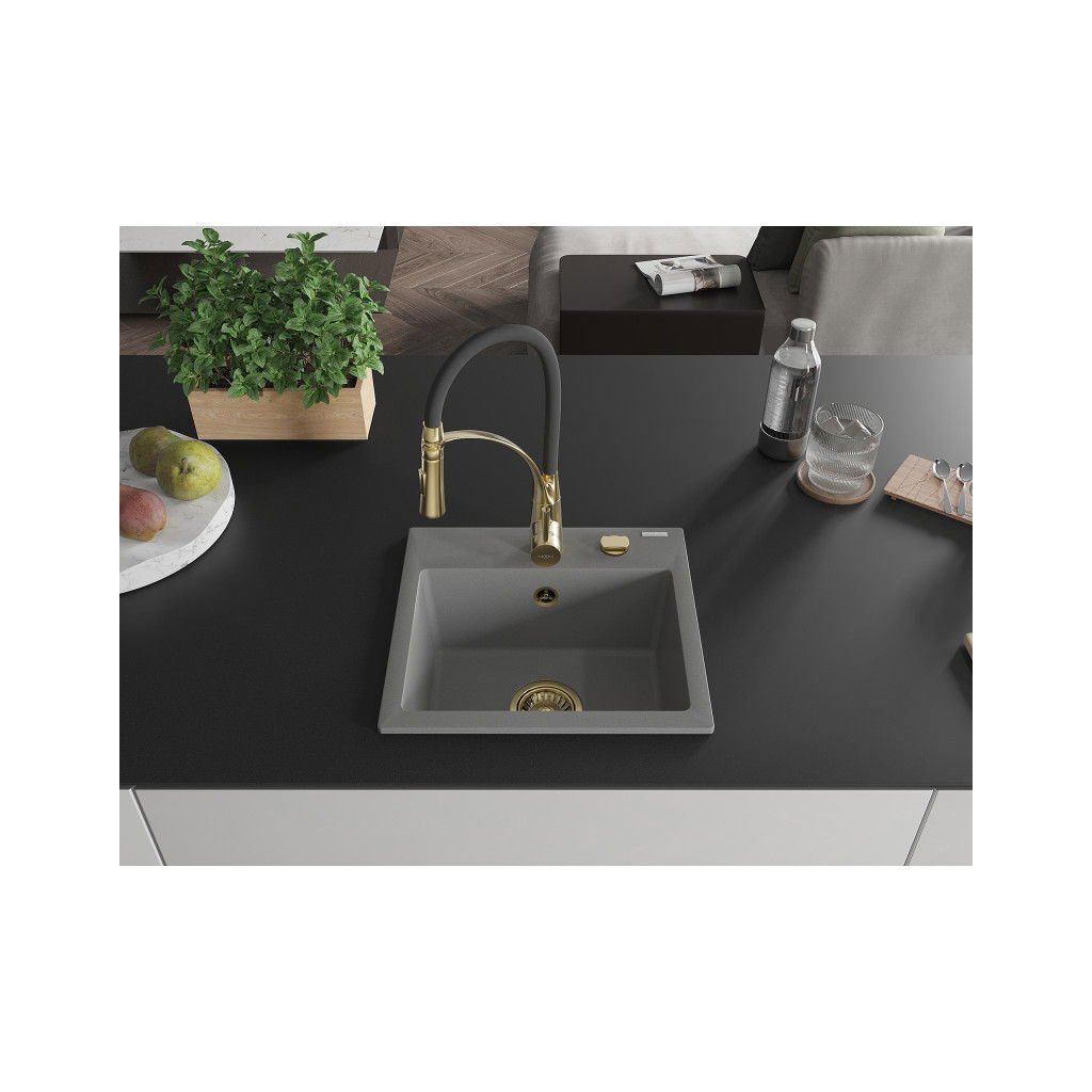 Mexen Milo, chiuveta granit cu 1 camera 435x410x171 mm si baterie pentru chiuveta Aster, gri, 6505-71-73450-57-G