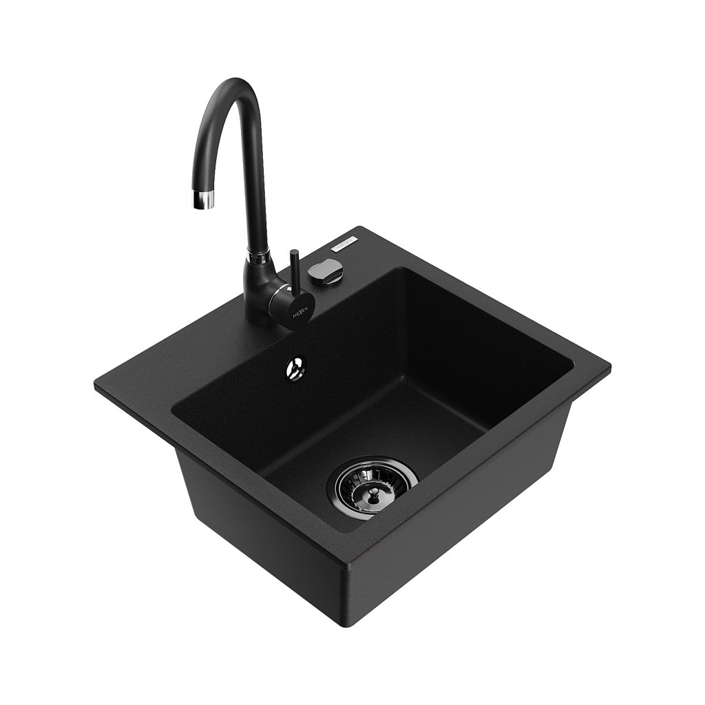 Mexen Milo, chiuveta granit cu 1 camera 435x410x171 mm si robinet Telma negru, negru, 6505-77-670200-70-B