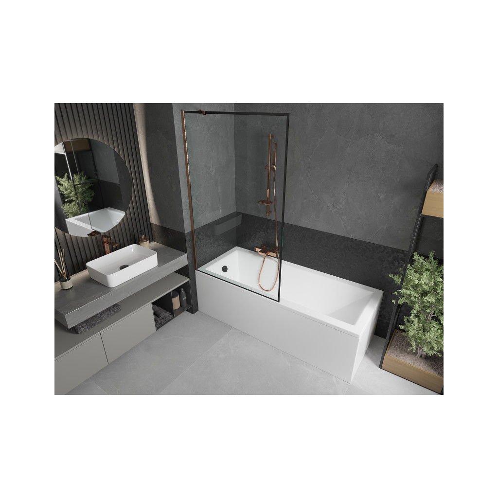 Mexen Next, paravan de baie 1 aripă 100 x 150 cm, aripă fixă, sticlă transparentă de 6 mm cu model negru, profil auriu roz, 895-100-000-00-70-60