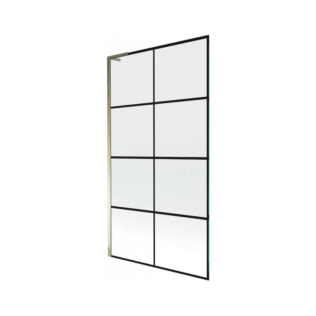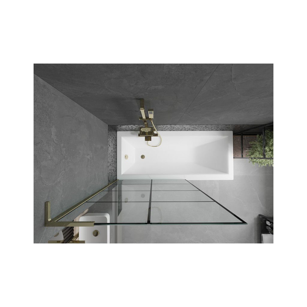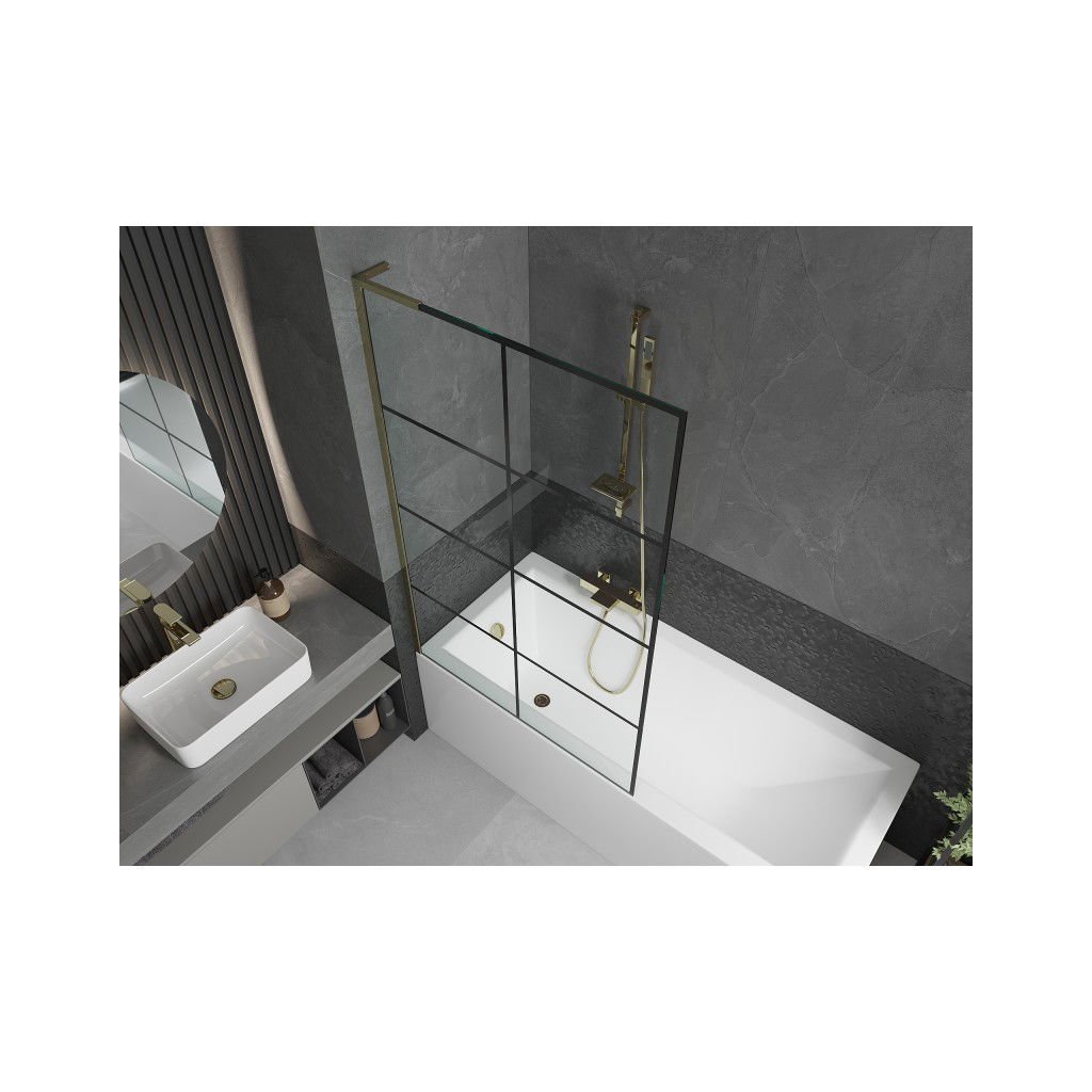Mexen Next L, paravan de baie cu 1 aripa 100 x 150 cm, model sticla transparenta-negru de 6 mm, profil auriu lucios, 895-100-000-03-77-50