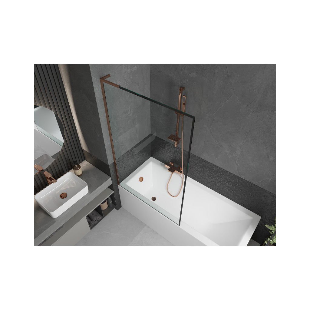 Mexen Next L, paravan de baie cu 1 aripă 100 x 150 cm, model sticlă transparentă-negru de 6 mm, profil auriu roz, 895-100-000-03-70-60