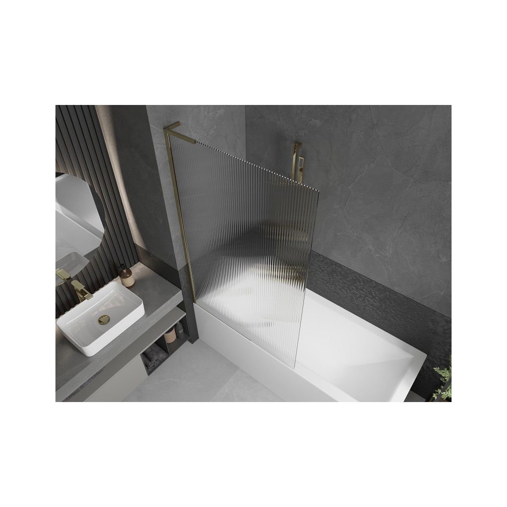 Mexen Next L, paravan de baie cu 1 aripă 100 x 150 cm, sticlă de 6 mm cu model nervuri, profil auriu lucios, 895-100-000-03-09-50