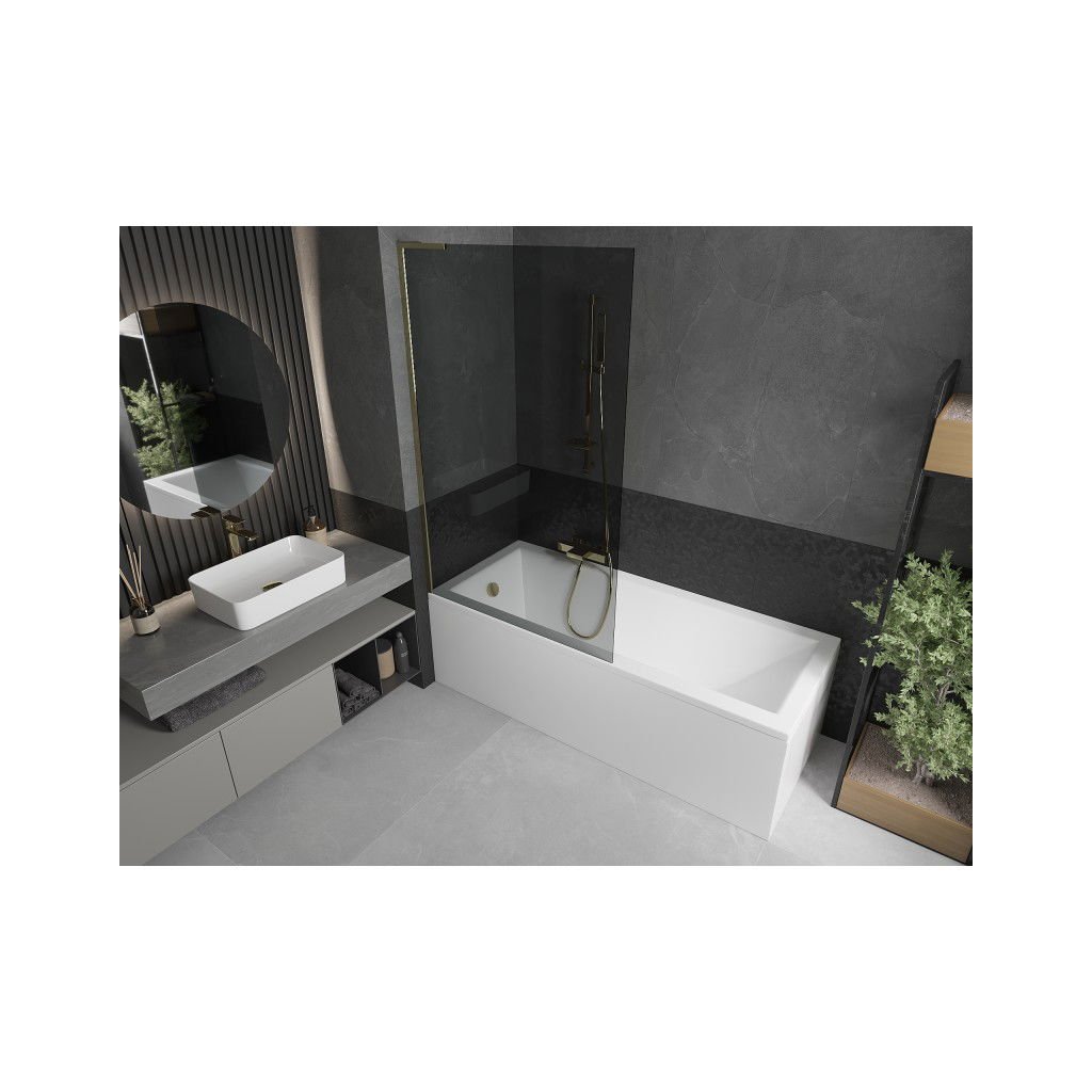 Mexen Next L, paravan de baie cu 1 aripă 100 x 150 cm, sticlă gri 6 mm, profil auriu lucios, 895-100-000-03-40-50