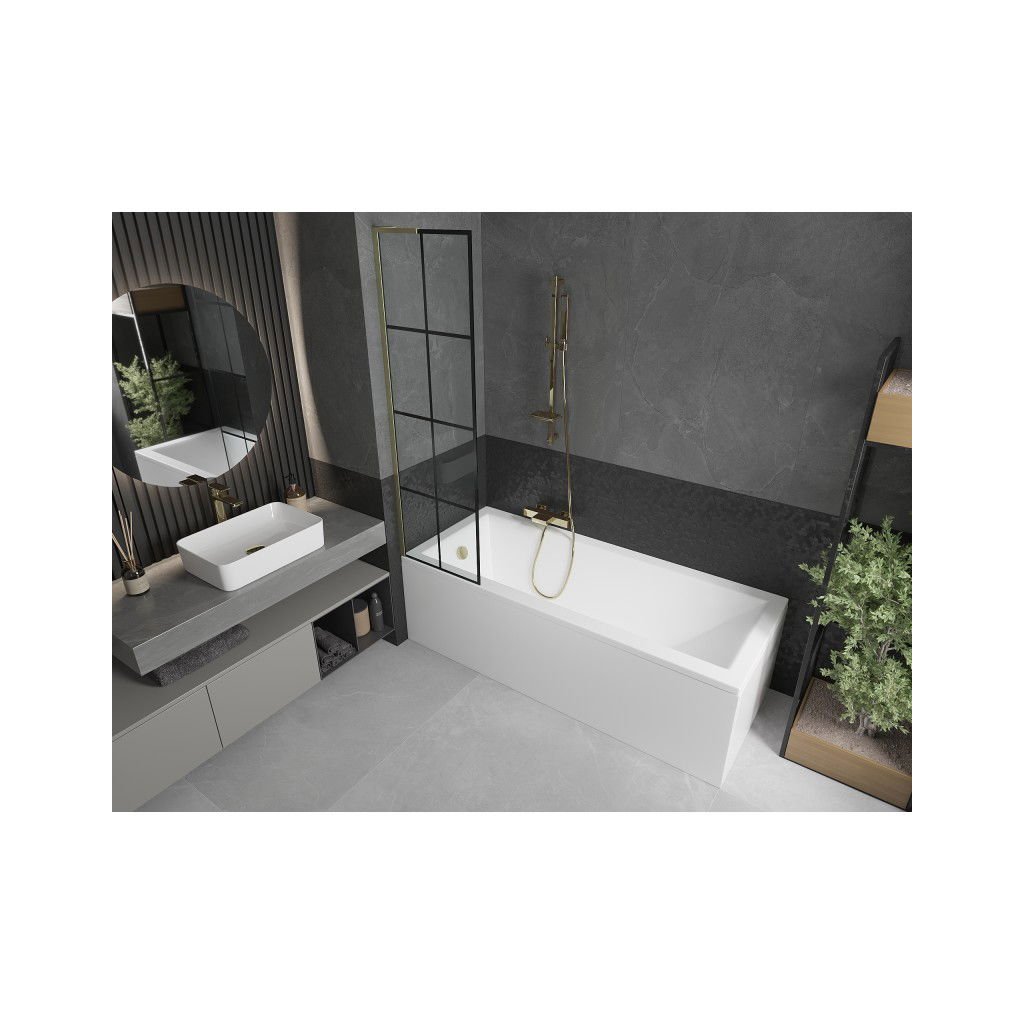 Mexen Next L, paravan de baie cu 1 aripă 50 x 150 cm, model sticlă transparentă-negru de 6 mm, profil auriu mat, 895-050-000-03-77-55