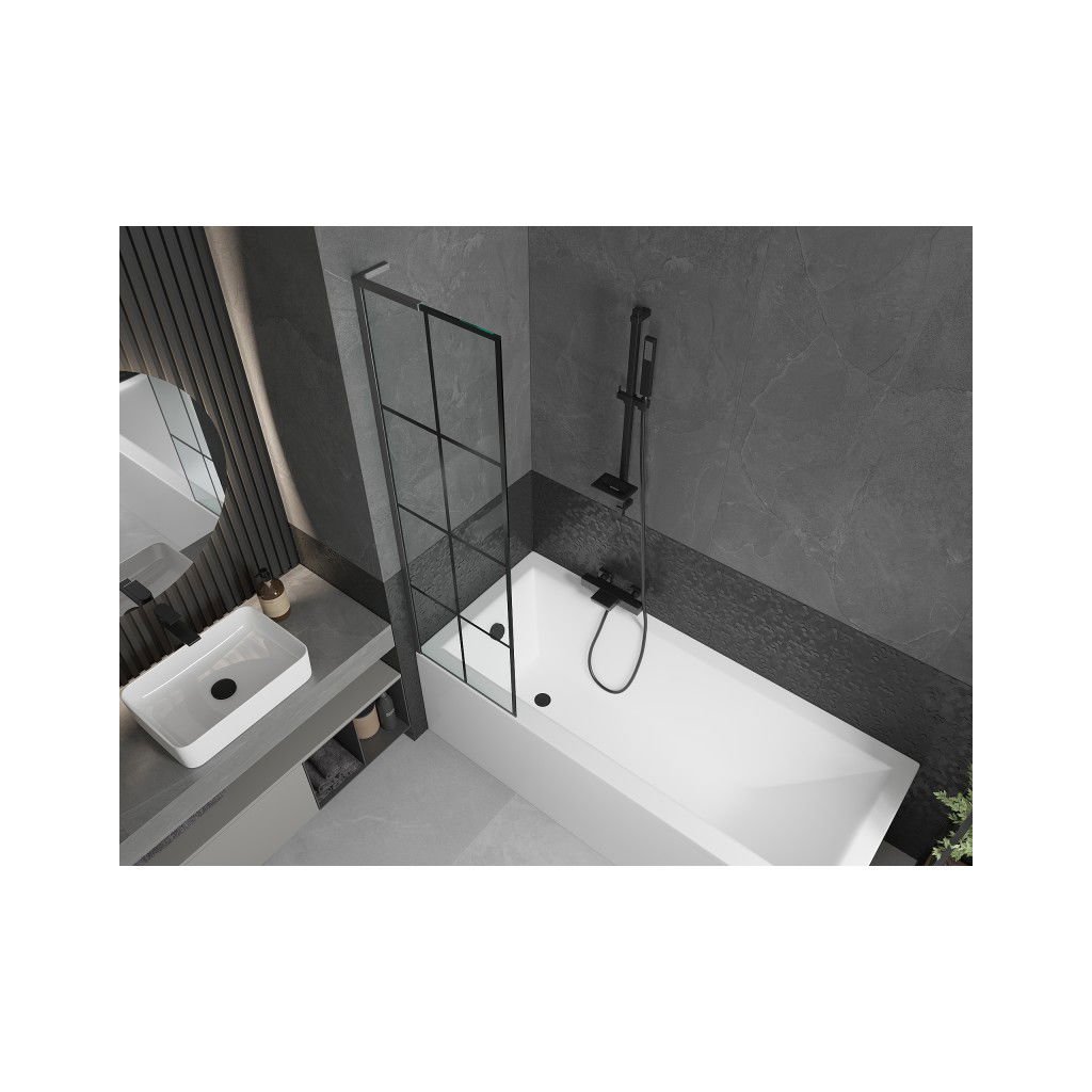 Mexen Next L, paravan de baie cu 1 aripă 50 x 150 cm, model sticlă transparentă-negru de 6 mm, profil grafit, 895-050-000-03-77-66