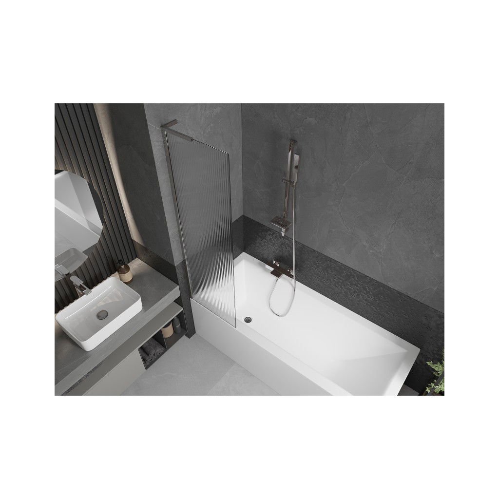 Mexen Next L, paravan de baie cu 1 aripă 50 x 150 cm, sticlă de 6 mm cu model nervuri, profil cromat, 895-050-000-03-09-01