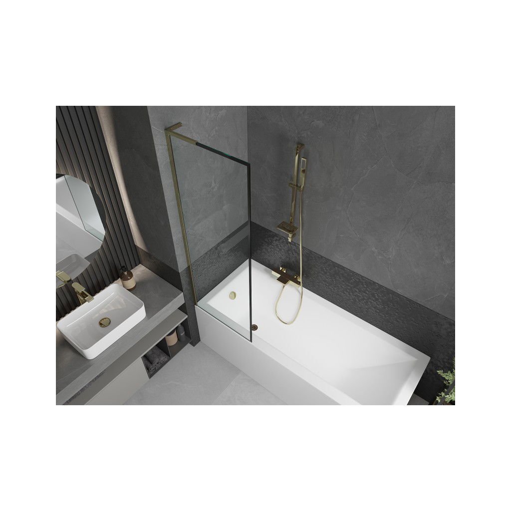 Mexen Next L, paravan de baie cu 1 aripă 60 x 150 cm, model sticlă transparentă de 6 mm negru, profil auriu strălucitor, 895-060-000-03-70-50
