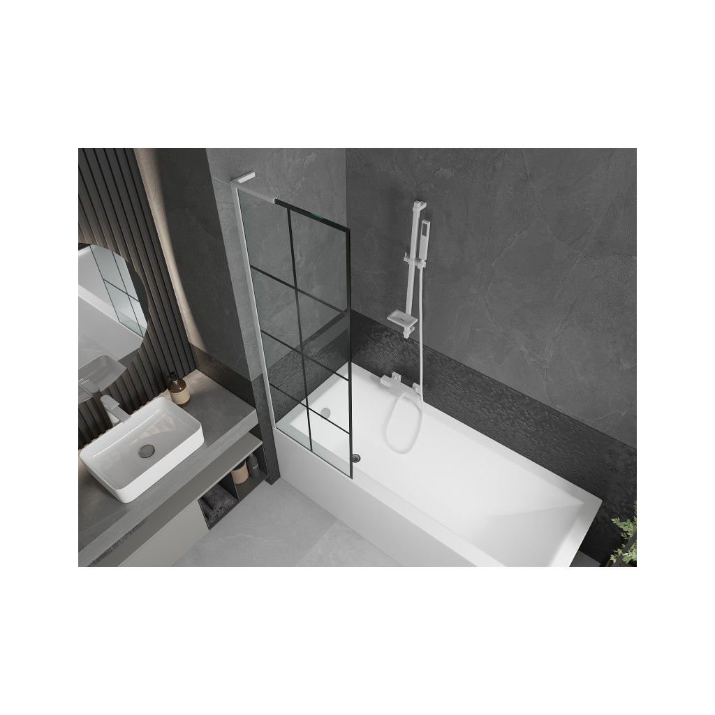 Mexen Next L, paravan de baie cu 1 aripă 60 x 150 cm, model sticlă transparentă-negru de 6 mm, profil alb, 895-060-000-03-77-20