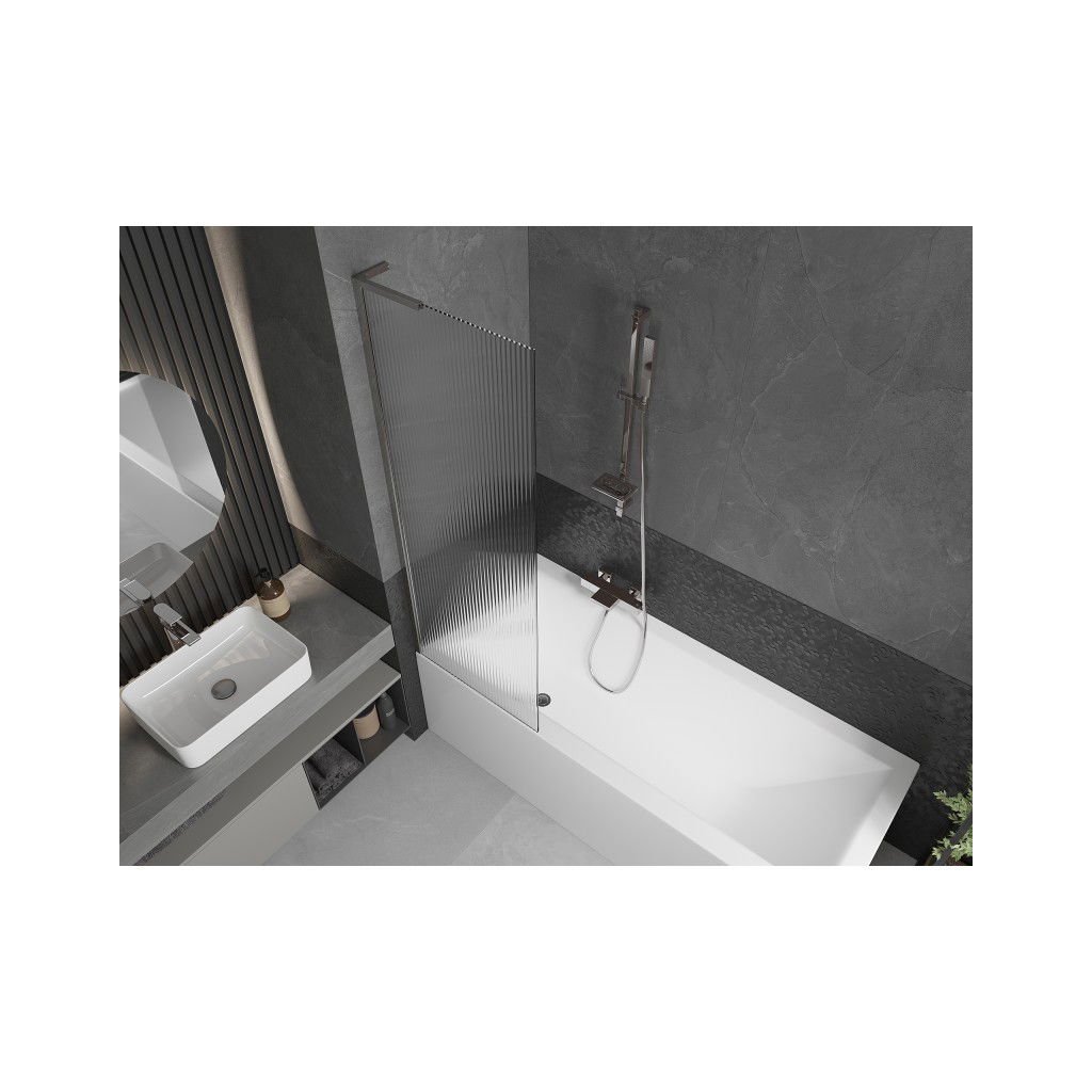 Mexen Next L, paravan de baie cu 1 aripă 60 x 150 cm, sticlă de 6 mm cu model nervuri, profil cromat, 895-060-000-03-09-01