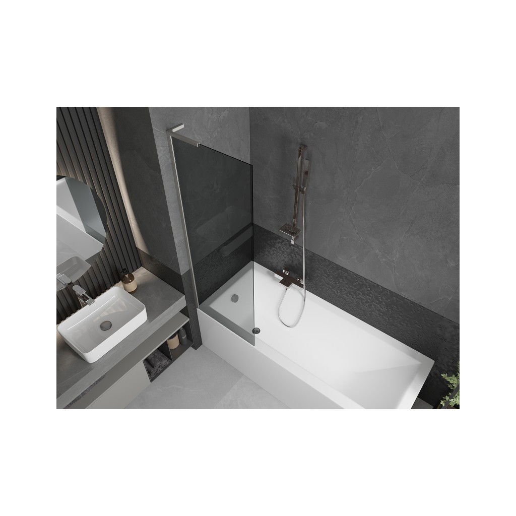 Mexen Next L, paravan de baie cu 1 aripă 60 x 150 cm, sticlă gri 6 mm, sticlă transparentă 6 mm, profil din oțel periat, 895-060-000-03-40-97