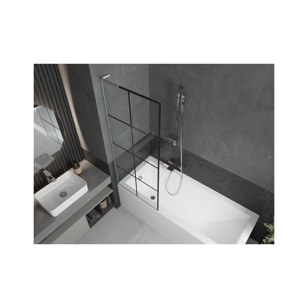 - Tip: paravan de baie cu 1 aripă cu profil de perete în L