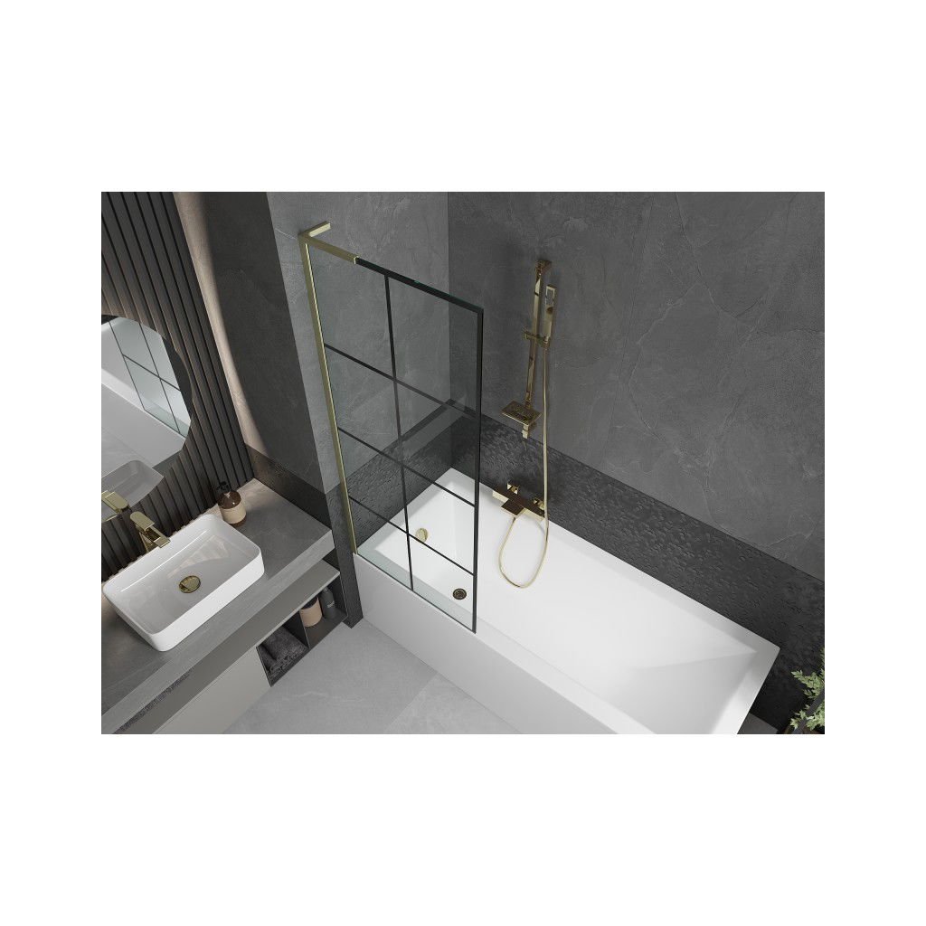 Mexen Next L, paravan de baie cu 1 aripă 70 x 150 cm, model sticlă transparentă-negru de 6 mm, profil auriu mat, 895-070-000-03-77-55