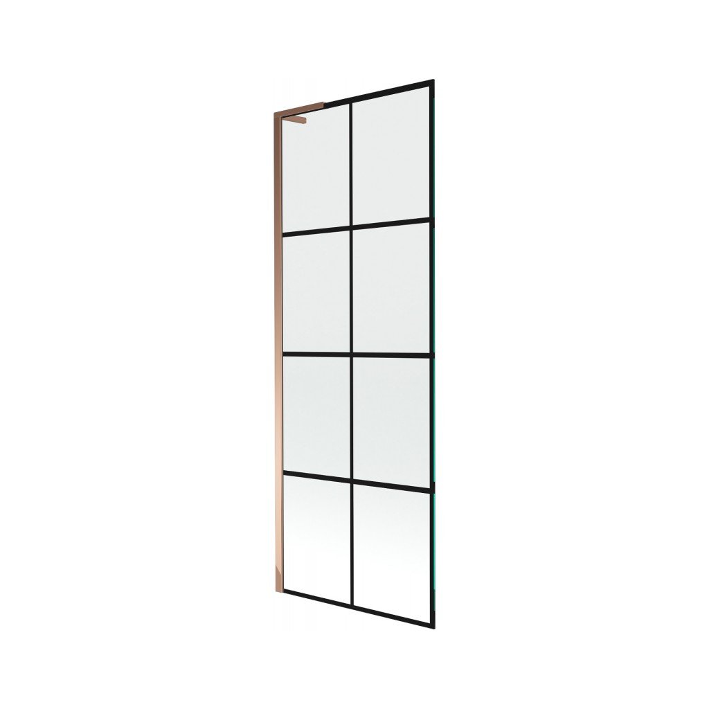 Mexen Next L, paravan de baie cu 1 aripă 70 x 150 cm, model sticlă transparentă-negru de 6 mm, profil auriu roz, 895-070-000-03-77-60