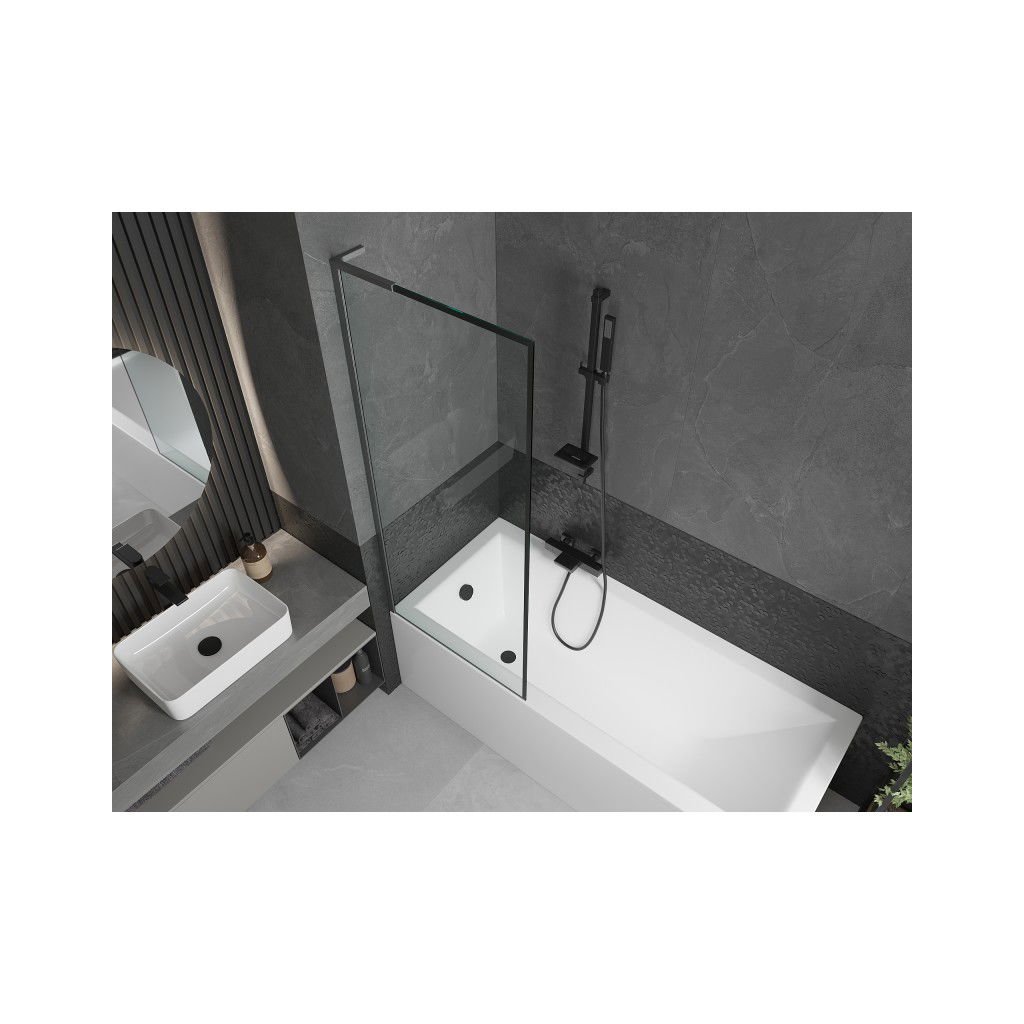 Mexen Next L, paravan de baie cu 1 aripă 70 x 150 cm, model sticlă transparentă-negru de 6 mm, profil grafit, 895-070-000-03-70-66
