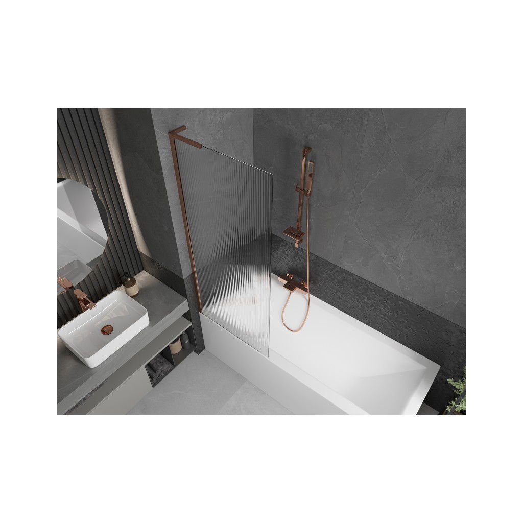 Mexen Next L, paravan de baie cu 1 aripă 70 x 150 cm, sticlă 6 mm cu model nervuri, profil auriu roz, 895-070-000-03-09-60