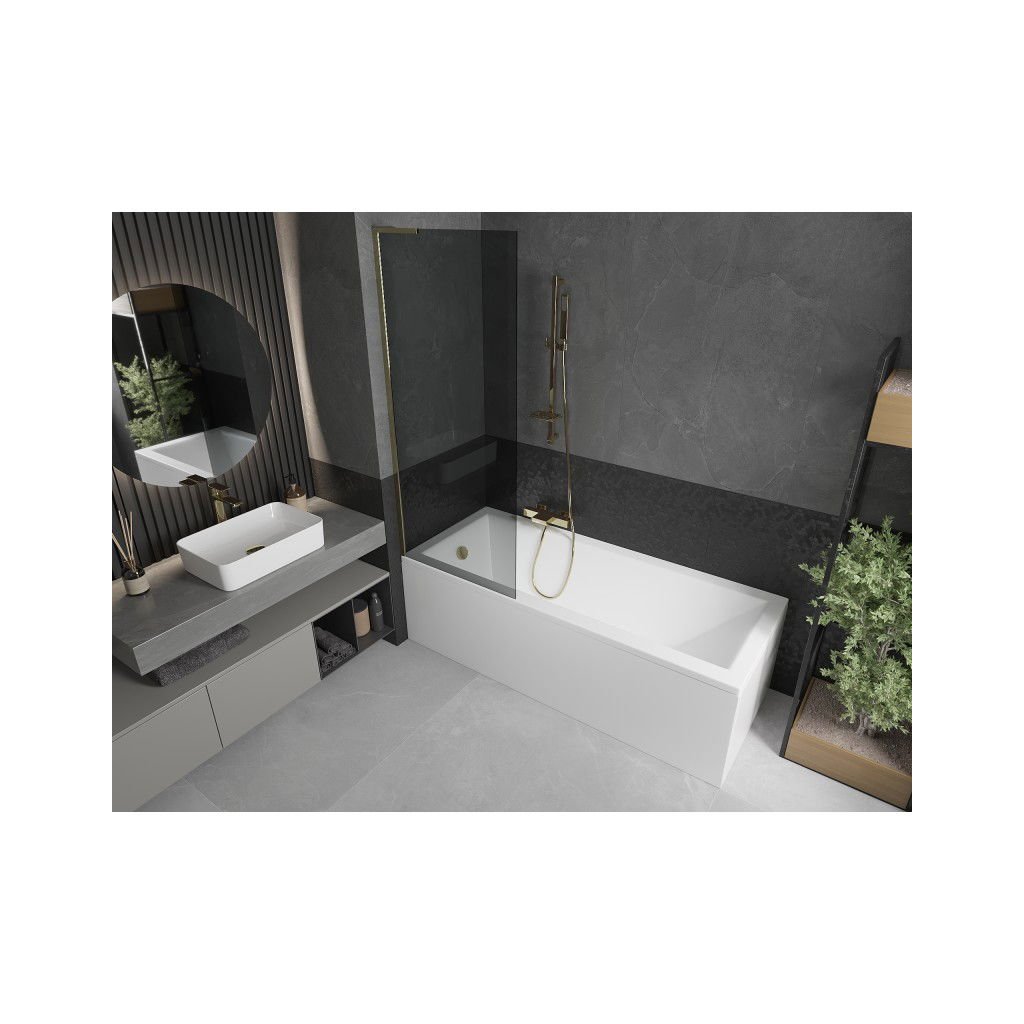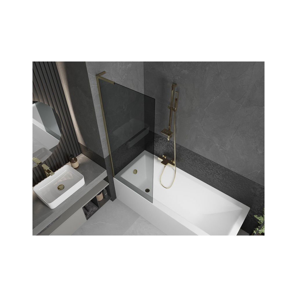 Mexen Next L, paravan de baie cu 1 aripă 70 x 150 cm, sticlă gri 6 mm, profil auriu lucios, 895-070-000-03-40-50