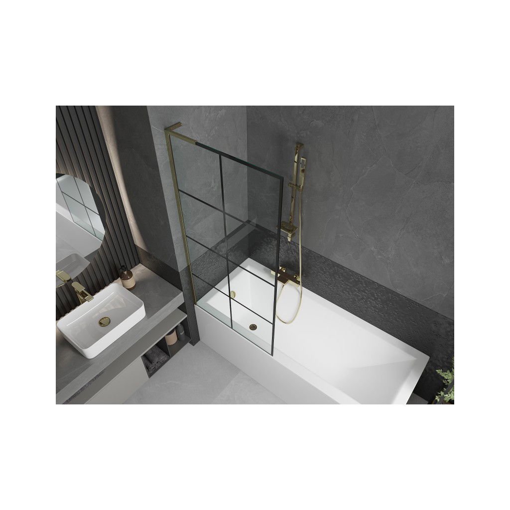 Mexen Next L, paravan de baie cu 1 aripă 80 x 150 cm, model sticlă transparentă-negru de 6 mm, profil auriu strălucitor, 895-080-000-03-77-50