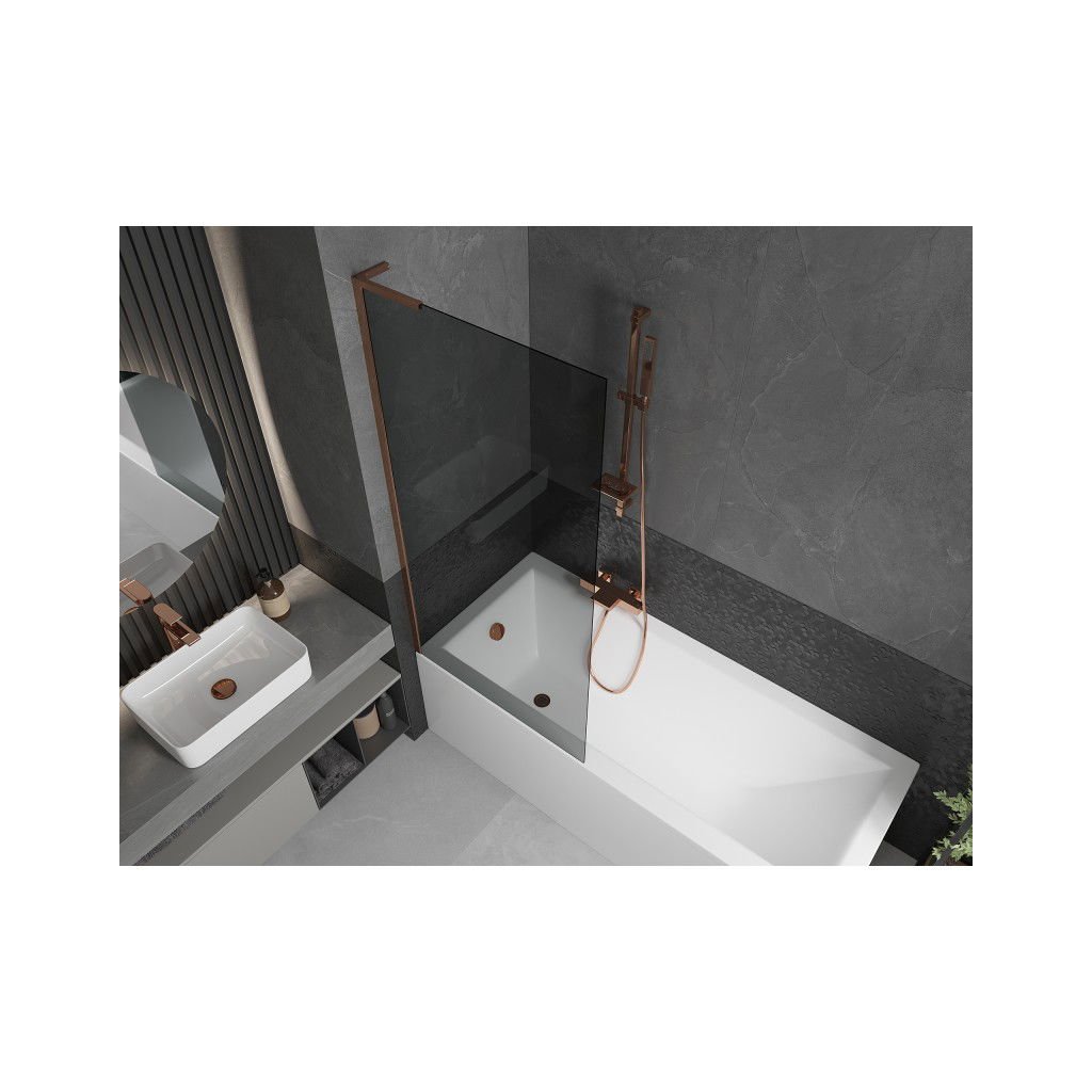 Mexen Next L, paravan de baie cu 1 aripă 80 x 150 cm, sticlă gri 6 mm, profil auriu roz, 895-080-000-03-40-60