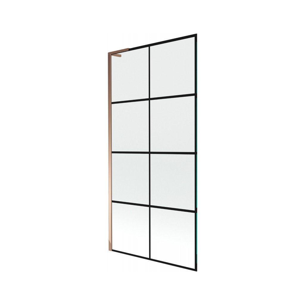 Mexen Next L, paravan de baie cu 1 aripă 90 x 150 cm, model sticlă transparentă de 6 mm negru, profil auriu roz, 895-090-000-03-77-60