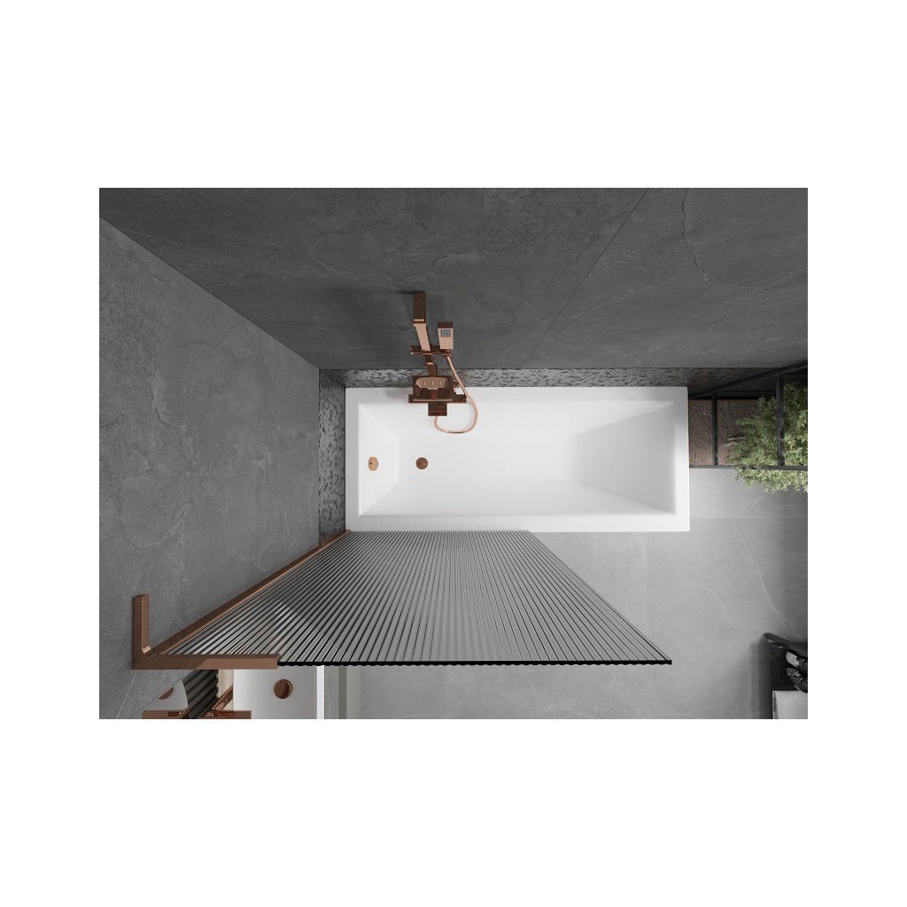 Mexen Next L, paravan de baie cu 1 aripă 90 x 150 cm, sticlă 6 mm cu model nervuri, profil auriu roz, 895-090-000-03-09-60