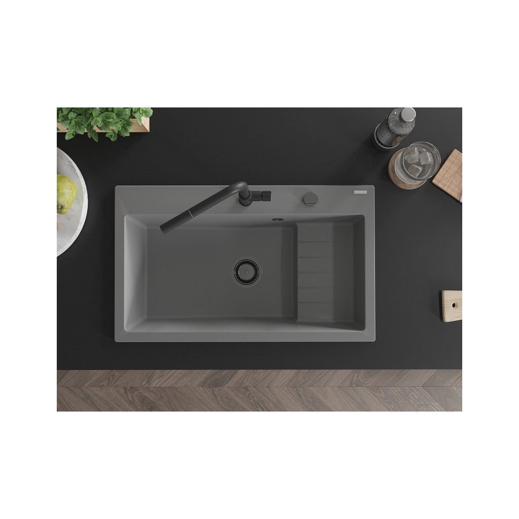 Mexen Omar, chiuveta granit cu 1 camera 800x480x210 mm, gri, sifon grafit, 6520801005-71-B