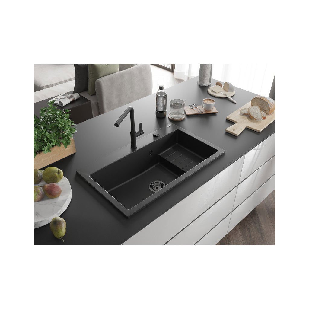 Mexen Omar, chiuveta granit cu 1 camera 800x480x210 mm, negru, sifon grafit, 6520801005-77-B