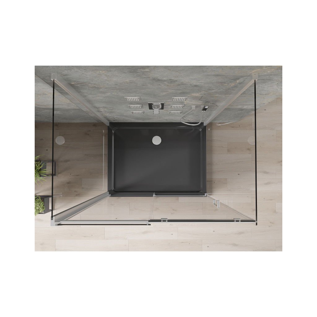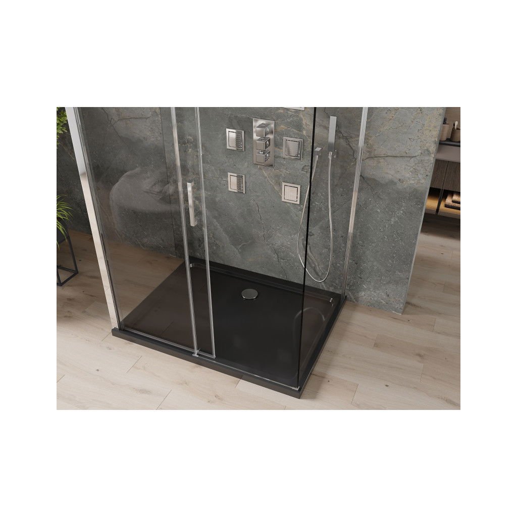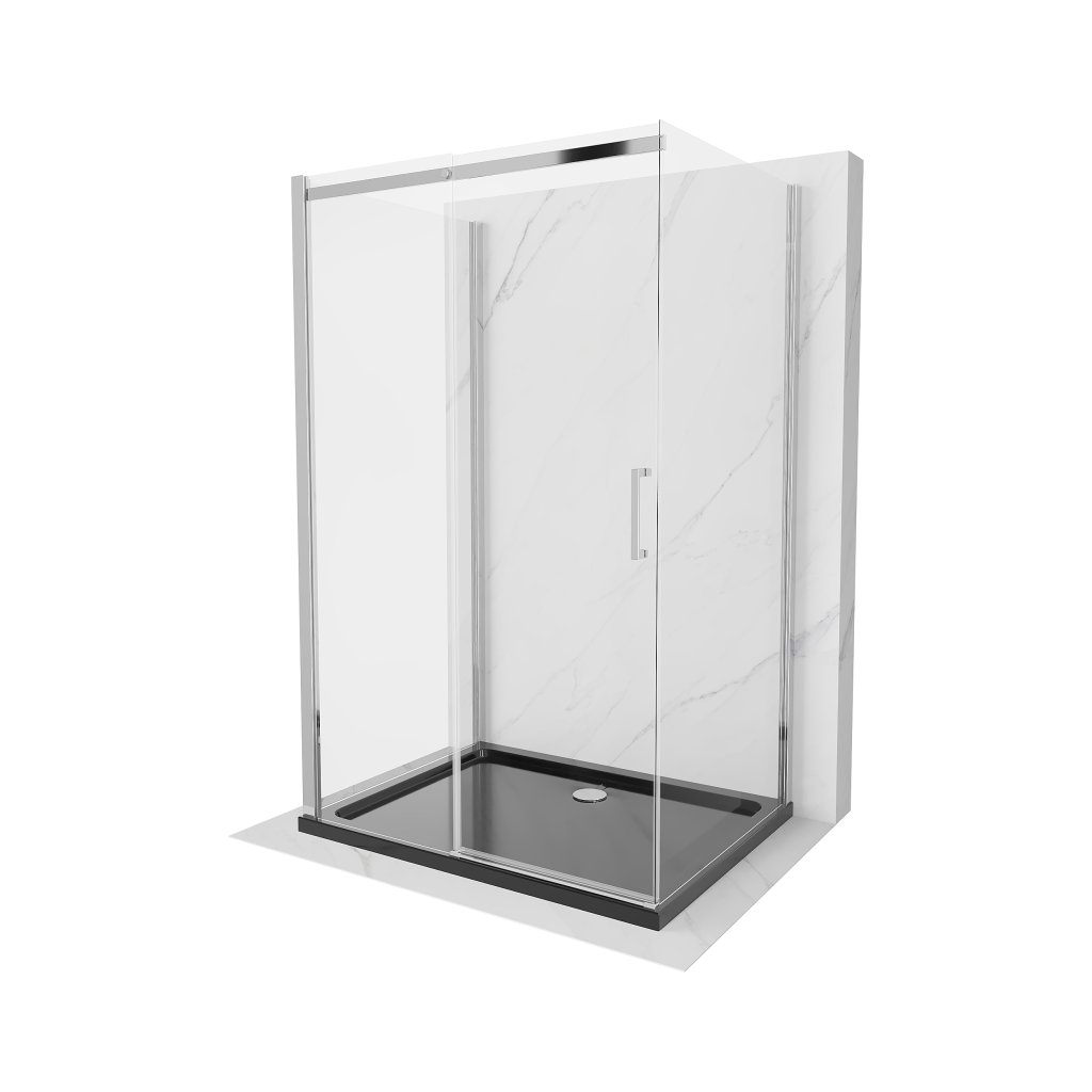 Mexen Omega, cabină de duș cu 3 pereți cu ușă glisantă 100 (uşă) x 80 (perete) x 190 cm, sticlă transparentă de 8 mm, profil cromat + cadă de duș SLIM neagră, 825-100-080-01-00-3S-4070