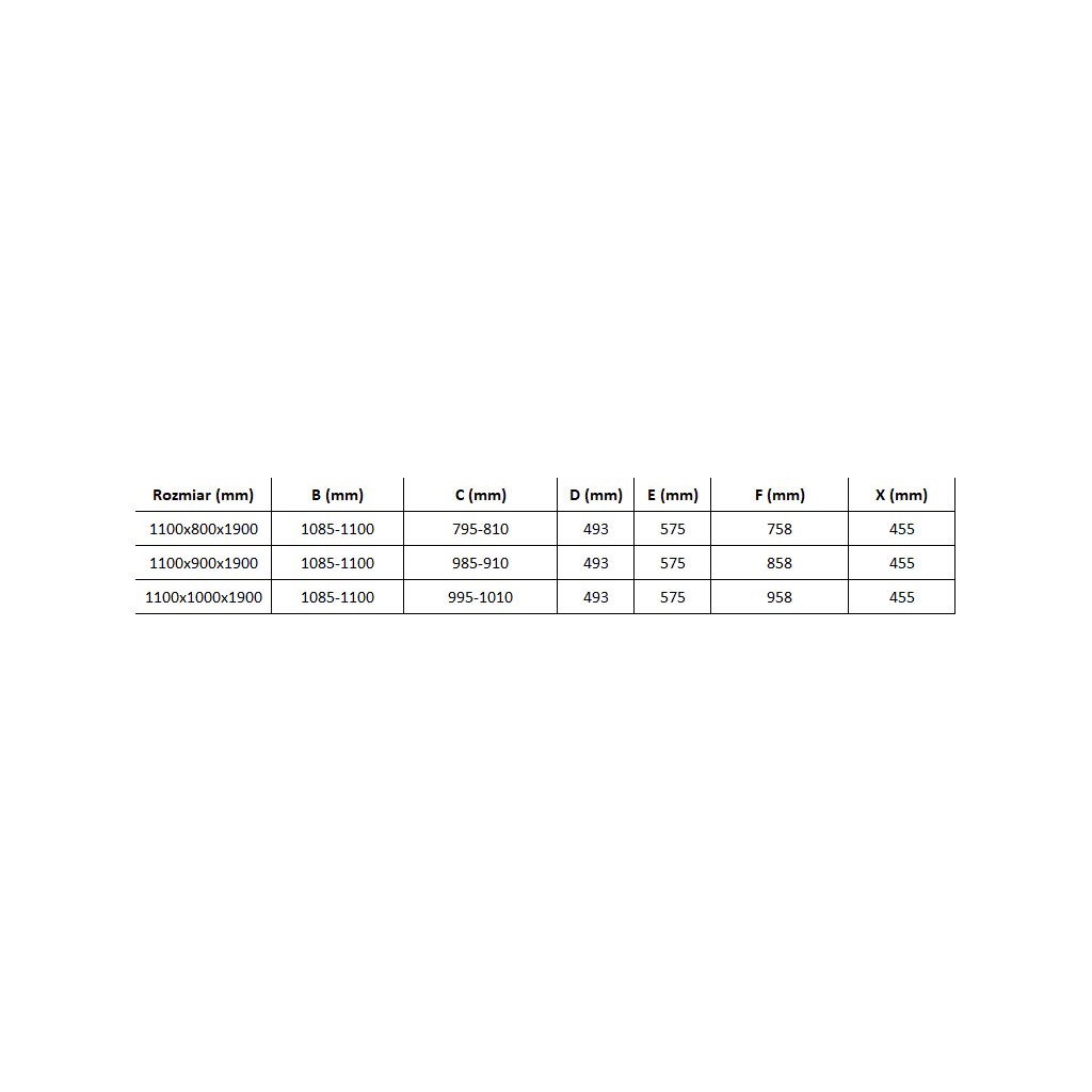 Mexen Omega, cabină de duș cu 3 pereți cu ușă glisantă 110 (uşă) x 80 (perete) x 190 cm, sticlă transparentă 8 mm, profil crom + cadă de duș SLIM albă, 825-110-080-01-00-3S-4010
