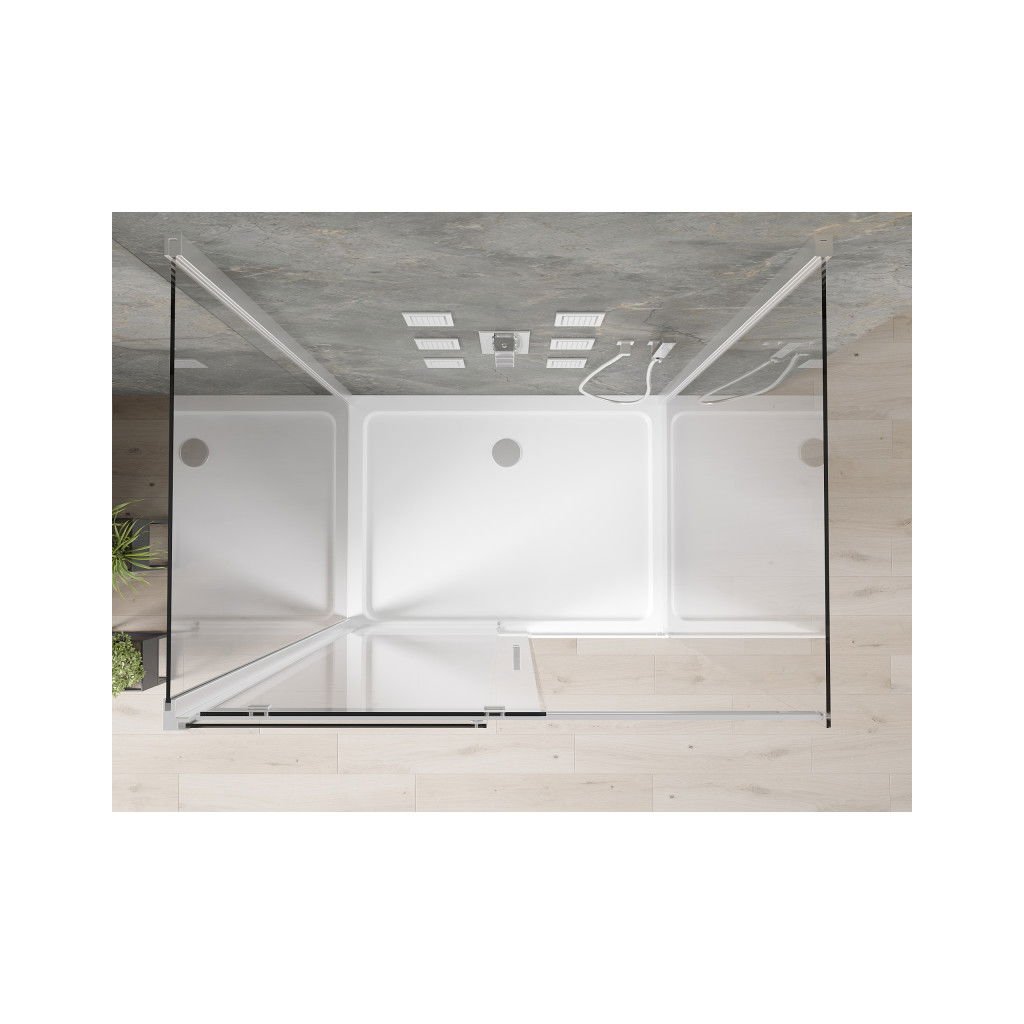 Mexen Omega, cabină de duș cu 3 pereți cu ușă glisantă 110 (uşă) x 80 (perete) x 190 cm, sticlă transparentă de 8 mm, profil crom + cadă de duș SLIM albă, 825-110-080-01-00-3S-4010