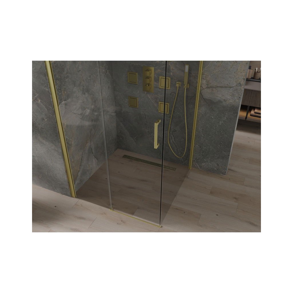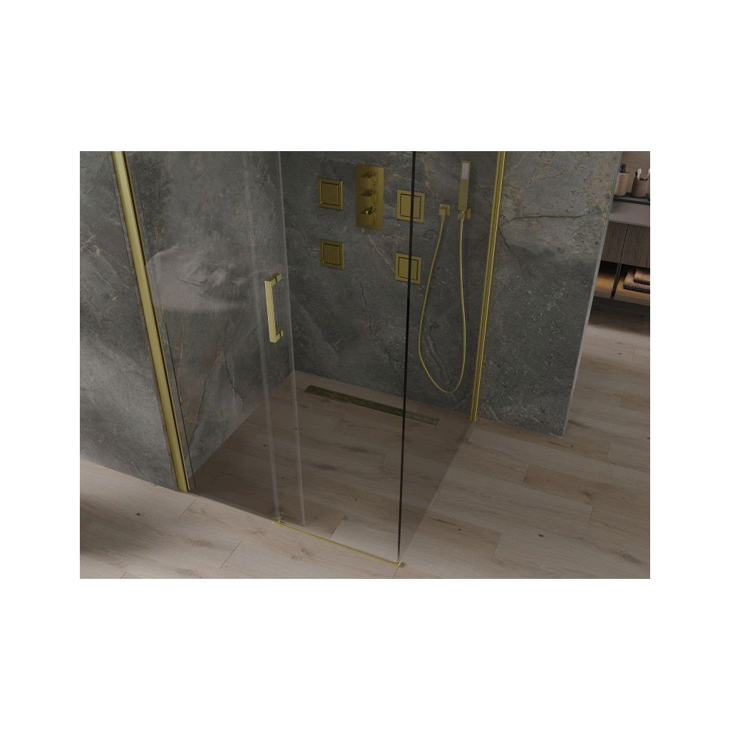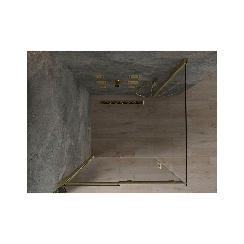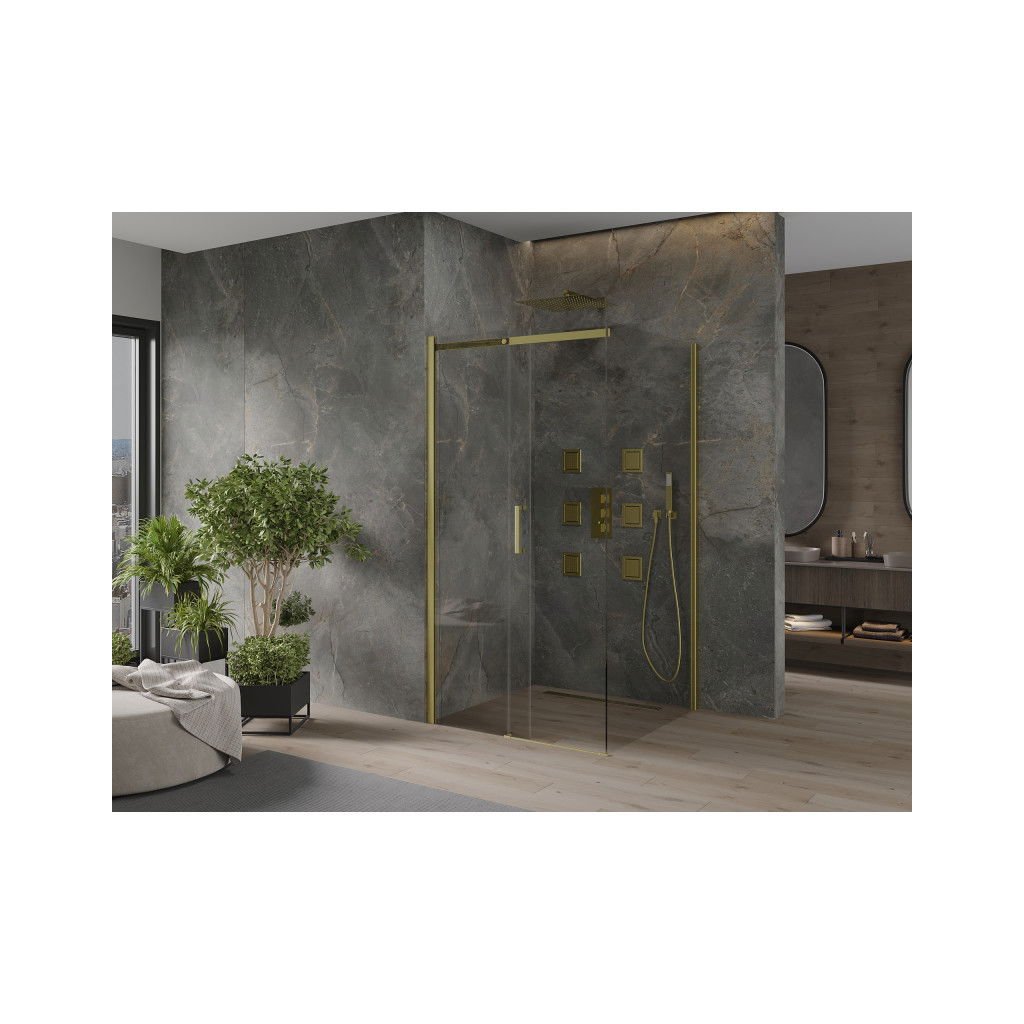 Mexen Omega, cabină de duș cu ușă glisantă 100 (uşă) x 100 (perete) cm, sticlă 8mm, profil auriu-sticlă transparentă, 825-100-100-50-00