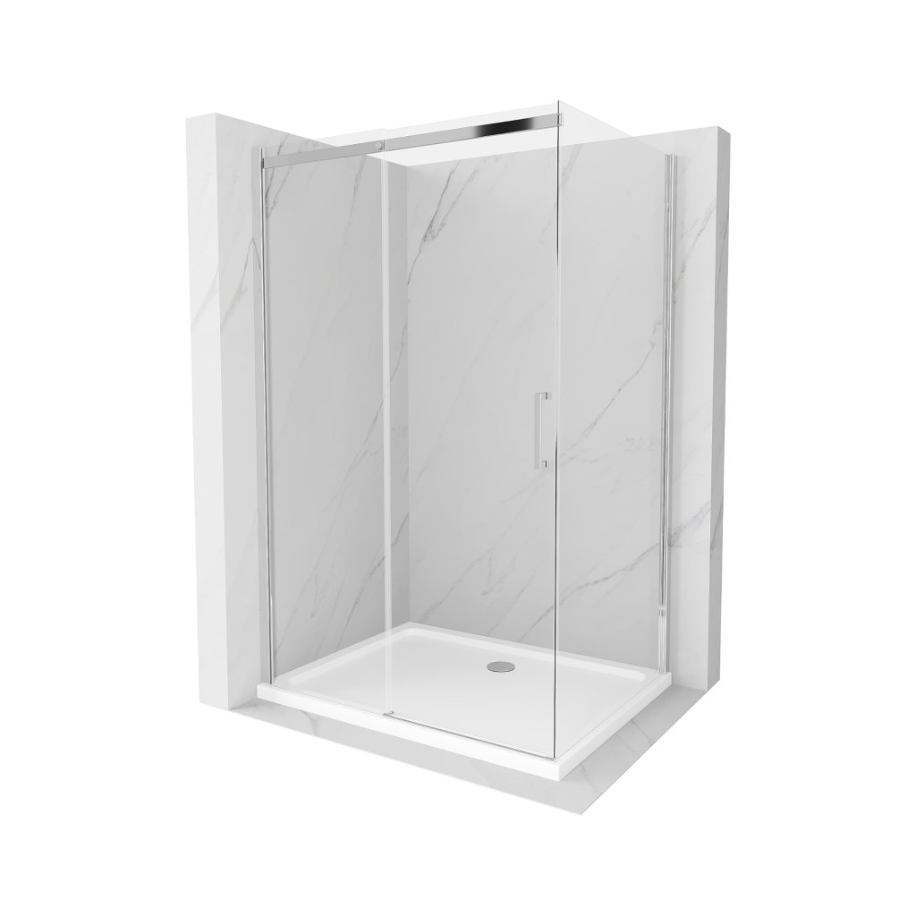Mexen Omega, cabină de duș cu ușă glisantă 100 (uşă) x 70 (perete) cm, sticlă transparentă 8mm, profil crom + cadă de duș subțire 5cm, 825-100-070-01-00-4010